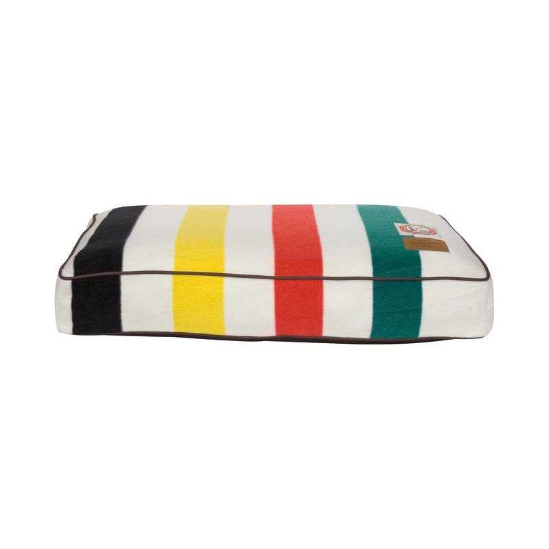 Give your furry friend his very own place to stay cozy with the Pendleton Olympic National Park Pillow Dog Bed with Removable Cover. With designs inspired by national parks, this pillow bed features a 320GSM non-pill fleece cover that will keep your best friend cozy and warm as he snoozes. It can also be flipped to the quilted cotton canvas reverse side that will keep him cool when the temperatures rise. This cuddly pillow bed is overstuffed with recycled, high-loft, memory fiber polyester—which keeps him comfy and also elevates him, so he remains snug and away from cold floors and drafts. It features a unique, channel chambered liner that prevents fibers from shifting and maintains that elevation so he can have the maximum amount of comfort. The removable cover is machine washable and dryer safe so you can keep your pal’s bedding clean and cozy with ease.