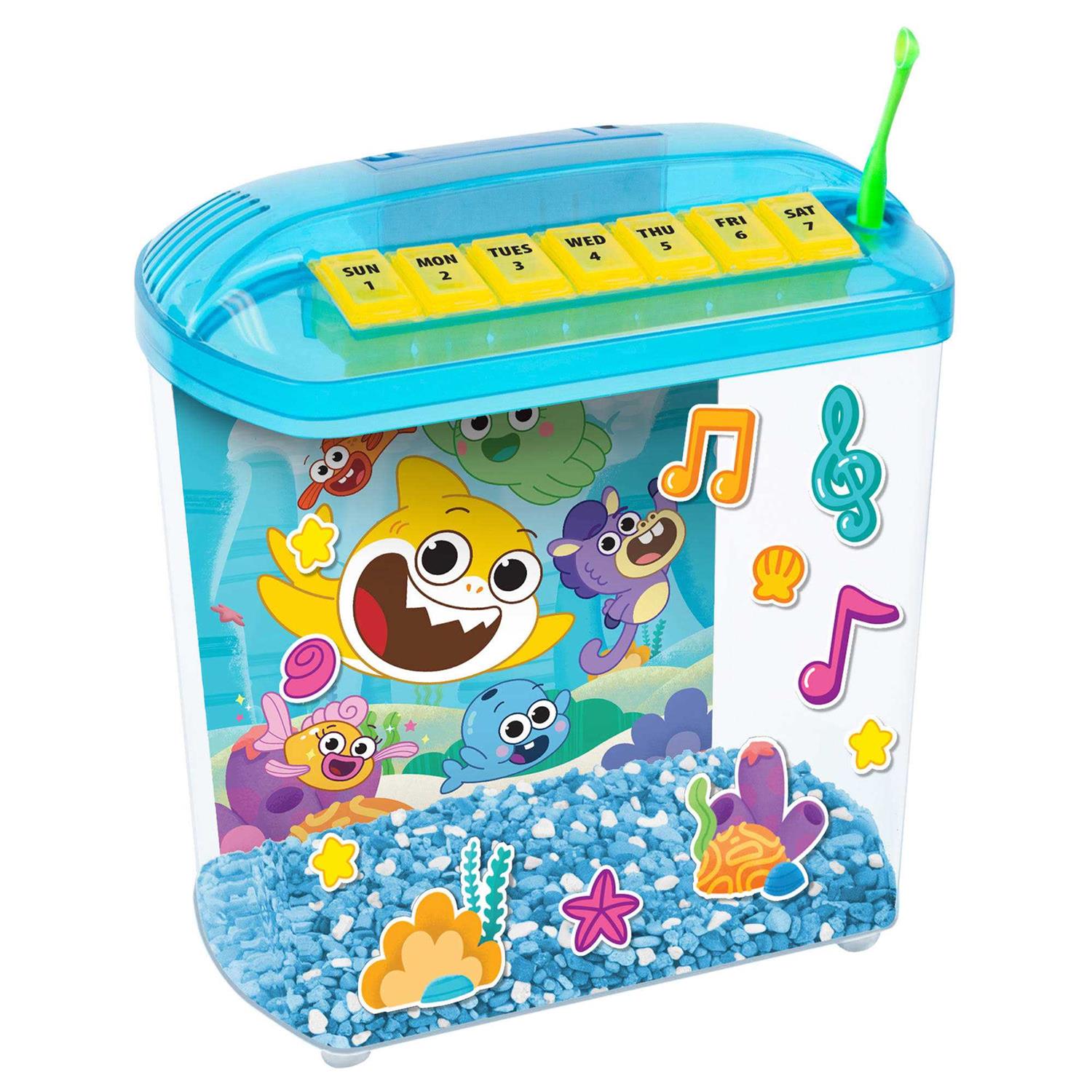 This aquarium kit comes with our Baby Shark themed. Rite-Bite Educational Betta Tank and 2 Baby Shark aquarium decorations. This kit is designed to help teach children the valuable lessons in responsibility and taking care of other living beings, as well as a basic introduction to life-cycle concepts early on.
