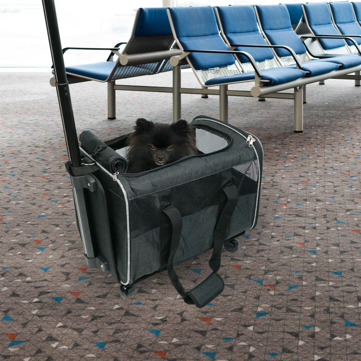 Pet Carrier with Wheels – Airline Approved – Rolling Pet Carrier – Soft Dog & Cat Travel Carrier – Small Dog Carrier – Removable Wheels – 17.5” x 12