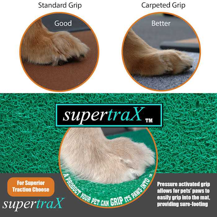 • Pressure activated grip allows for pets’ paws to easily grip into the mat, providing sure-footing