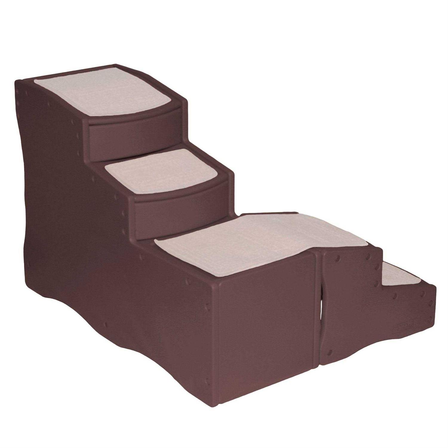 The Easy Step Bed Stair was designed specifically for smaller pets. Its deep steps give your pet the ability to get their entire body on each platform and a shorter step height makes climbing the stairs easier for pint-sized pets. The new space-saving design allows the stairs to wrap snuggly around furniture taking up less room in your home. These stairs feature a hinged back panel that lifts up for easy access to storage space underneath the stairs. Carpet treads remove easily and are machine washable. Setup is literally “a snap” as the stair easily snaps together (no tools required).