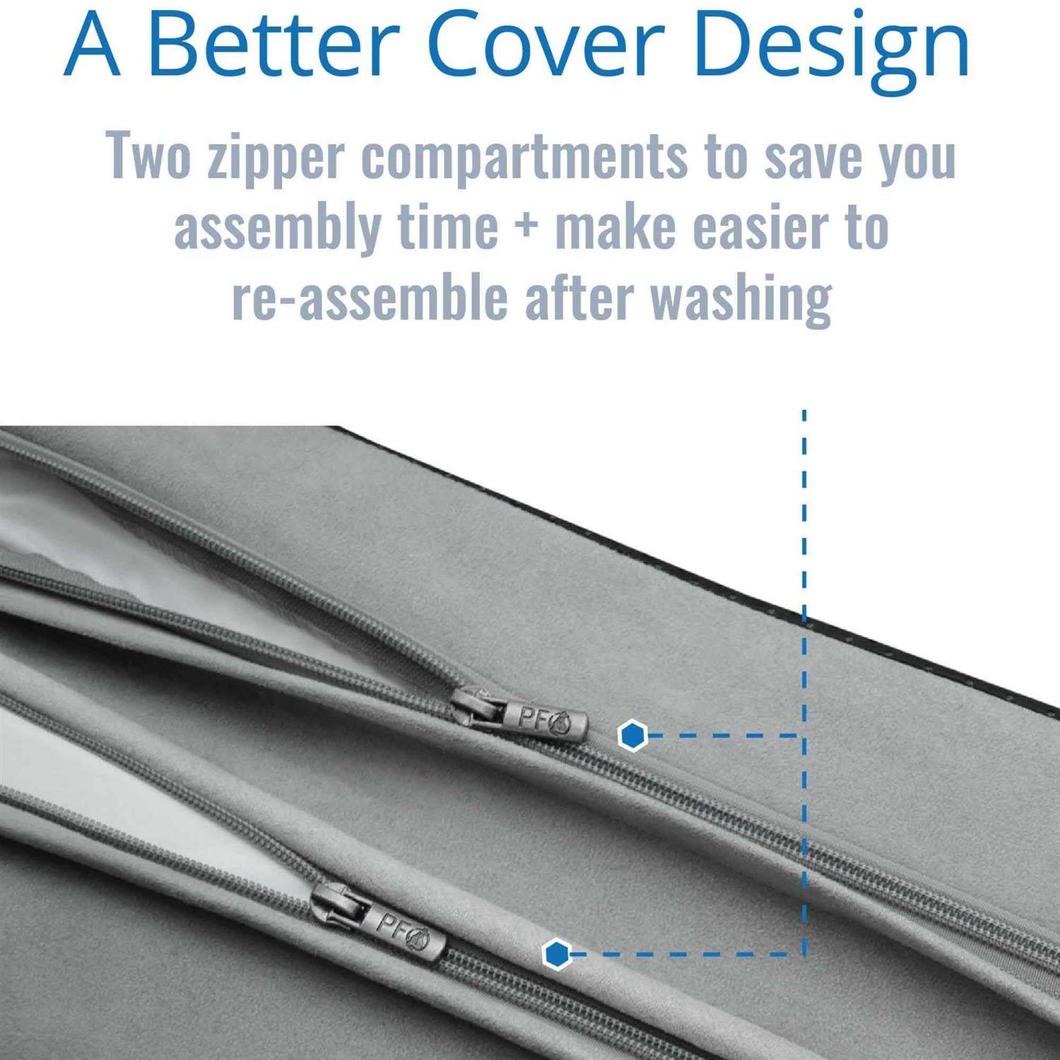 - Easy assiembly and peace of mind: ‘Bolsters’ compress and load into fabric cover along with solid foam base, then zip closed