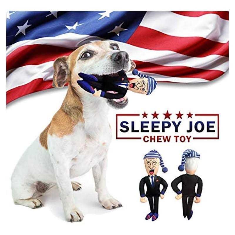 Squeak Toys by Republican Dogs. Details:Official Republican Dogs Sleepy Joe Biden themed chew toy will get lots of tail wags and paws-ups from your four-legged Republican friends. Made with durable polyester that includes triple stitching to ensure long-lasting play value, even for aggressive chewers. Whether you are democratic or republican, this political Parody chew toy is an excellent gift for pets, people and even politicians alike.