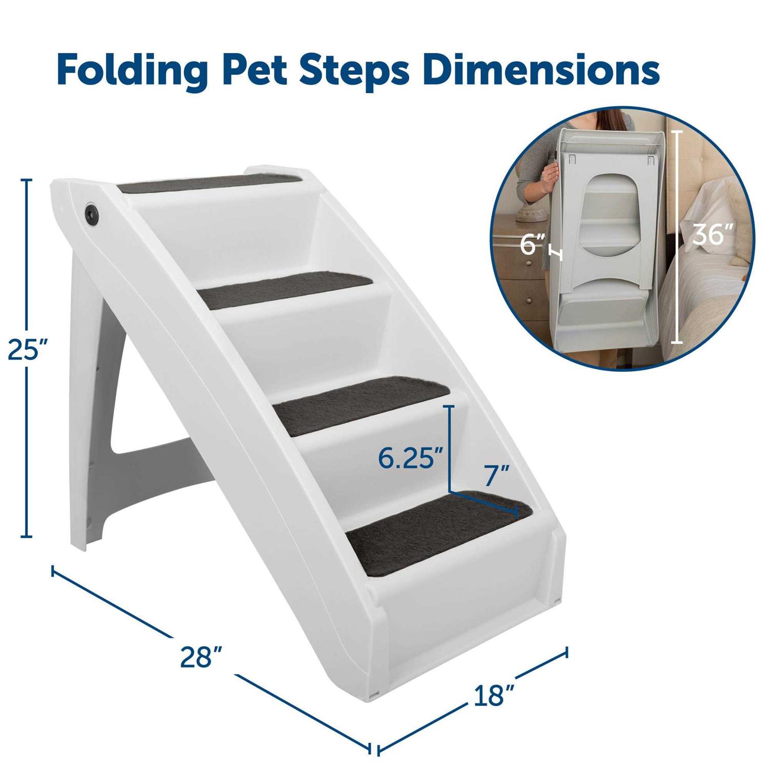 Pet cuddle time continue with your best friend with the help of PetSafe CozyUp Folding Pet Steps. If your dog or cat isn’t quite tall enough to reach the bed or couch, or if you want to help protect their joints, folding pet steps give your furry friend the freedom to get on and off furniture all by themselves. Weighing only 5 pounds, these pet steps are easy for you to carry and move around your house. Although light, the strong, durable folding steps can support up to 150 pounds and are suited for small to medium size pets. The fabric covers, siderails and nonskid feet allow your dog or cat to confidently walk up and down the pet steps without the steps sliding around or wobbling. Between snuggle sessions, you can conveniently store the pet steps by folding them flat and sliding it under a piece of furniture. The pet steps are available in 2 colors, tan and grey. PetSafe brand is here to help you and your pet live happy together.