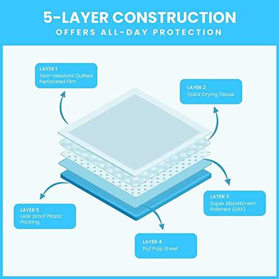USE ANYWHERE IN YOUR HOME: These dog pee pads cover your floors and your puppy’s crate for protection. Strong 5 Layer Protection: These Dog potty pads include 5 layers. First, a quilted top layer that prevents splatters and tracking around the home. Next, a pulp and polymer sandwich which instantly turns liquids into a gel, and lastly a strong waterproof backing film on the bottom to make cleanup a breeze. PADS THAT YOU CAN TRUST: NO MESS. NO HASSLE- Special technology turns liquid into gel instantly and eliminates extra odor, leaving your house smelling fresh. Not Just for Dogs, But Also for Other Pets! Not only for dogs, our pet potty pads are also perfect for kittens, cats, rabbits, ducks, squirrels, guinea pigs, birds, and more. These are not only for indoor use but also for outdoor use.