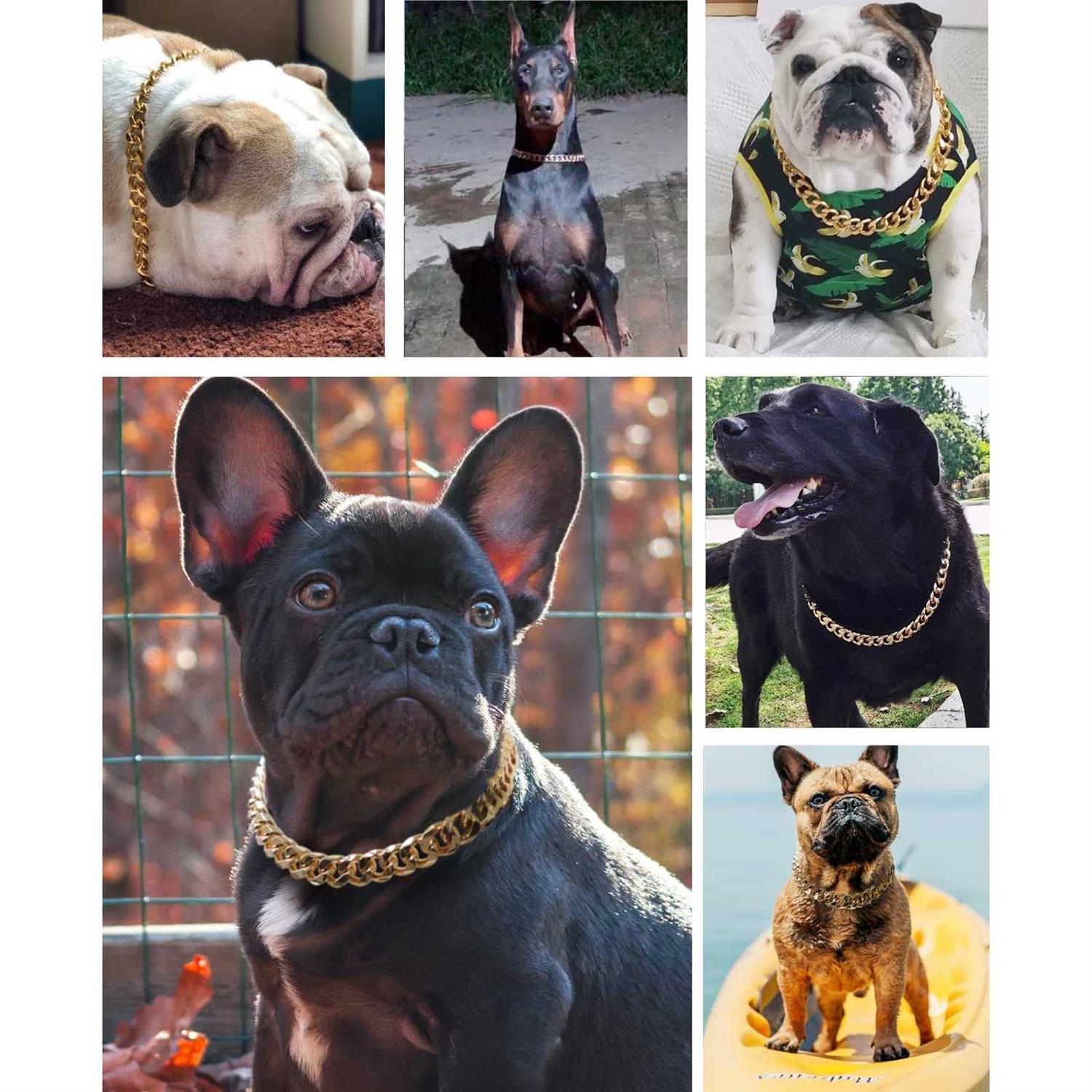 - This dog gold collar chain match good with Bulldog, French Bulldog, American Bully, Pit Bull, Doberman, etc.