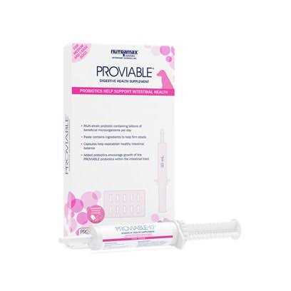 Proviable is a clinically researched multi-strain probiotic supplement for dogs containing billions of colony forming units (CFUs) of beneficial bacteria that help support a healthy intestinal balance. Proviable contains both prebiotics and probiotics to help support intestinal health. The prebiotics help support the growth of the beneficial Proviable probiotics within the gut. Proviable Digestive Health Supplements are brought to you by Nutramax Laboratories Veterinary Sciences, the #1 veterinarian recommended supplement company. *Source: Survey conducted among small animal veterinarians who recommended animal supplements.