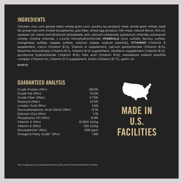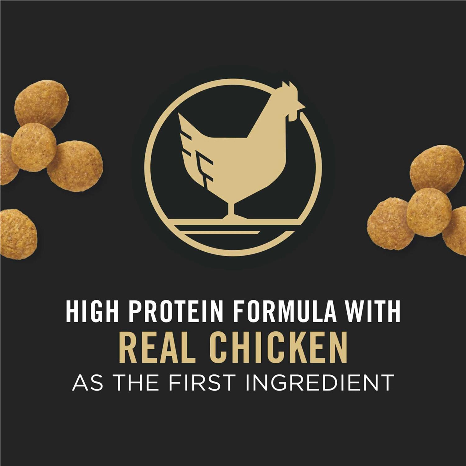 As this item transitions you may receive either bag. ** Your pup might be petite now but he won t be for long Carefully designed for our larger fur-iends who will be over 50 pounds once mature it provides the essential nutrients he needs in his biggest growing stage. Chicken is the first ingredient delivering plenty of the protein he requires. The addition of DHA from omega-rich fish oils helps support your furbaby s brain and vision development. Plus it contains live probiotics to keep his tummy happy and support his immune health.