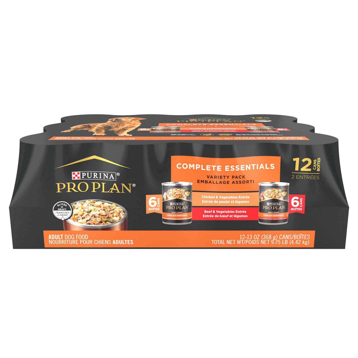 Purina Pro Plan Complete Essentials Variety Pack Beef & Vegetable & Chicken & Vegetable Entrée Slices in Gravy Wet Dog Food, 13-oz Can, Case of 12