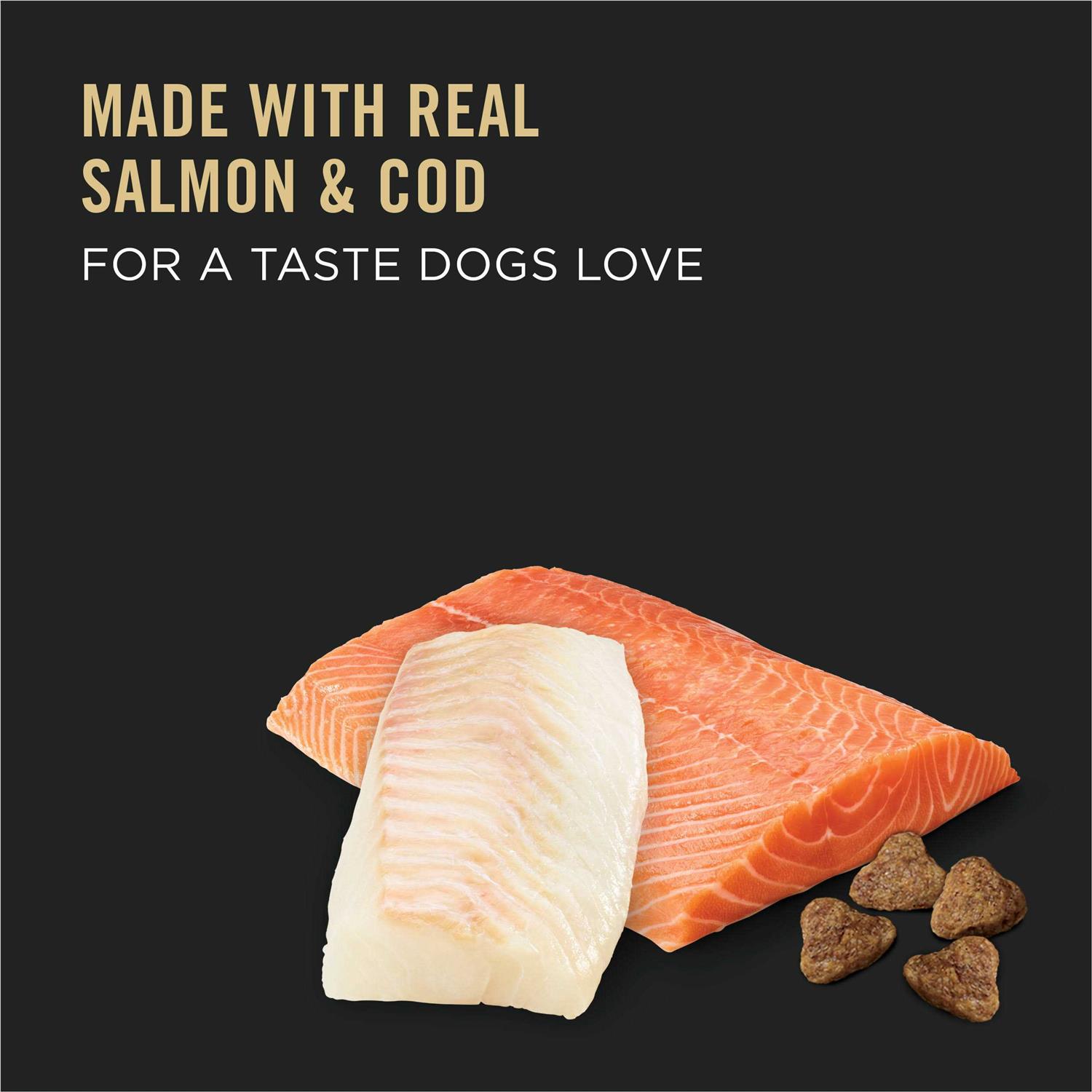 Designed specifically for highly active dogs and competitive canine athletes, this sport dog food provides concentrated nutrition to help optimize oxygen metabolism for increased endurance. Featuring real, high-quality salmon as the first ingredient, plus cod, this fine-tuned, fish dog food contains a ratio of 30 percent protein and 20 percent fat to support your dog’s metabolic needs and help him sustain energy. It’s enriched with essential amino acids to help nourish his muscles and is fortified with EPA and glucosamine for joint health and mobility, so he can get the support he needs while jumping, running, fetching, and more. Packed with Omega-6 fatty acids and Vitamin A to nourish his skin and coat, it also has live probiotics that aid in his digestive and immune health. Plus, Pro Plan Sport is the official performance dog food of Ducks Unlimited, so you can feel confident that you’re delivering him high protein dog food with antioxidant-rich nutrition that helps him excel.