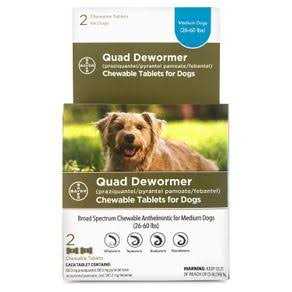 Quad Dewormer for Medium Dogs (26-60 lbs) – 2 Chewable Tablets