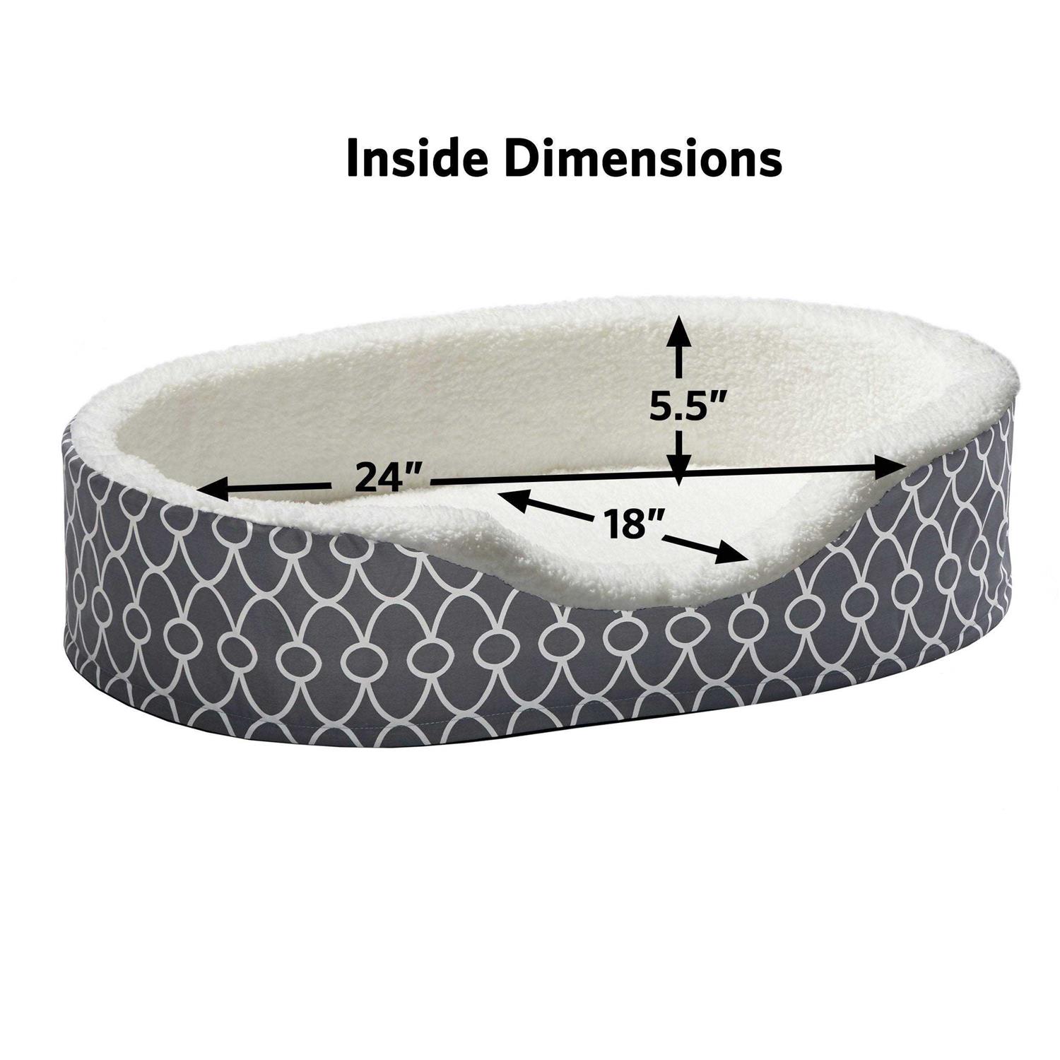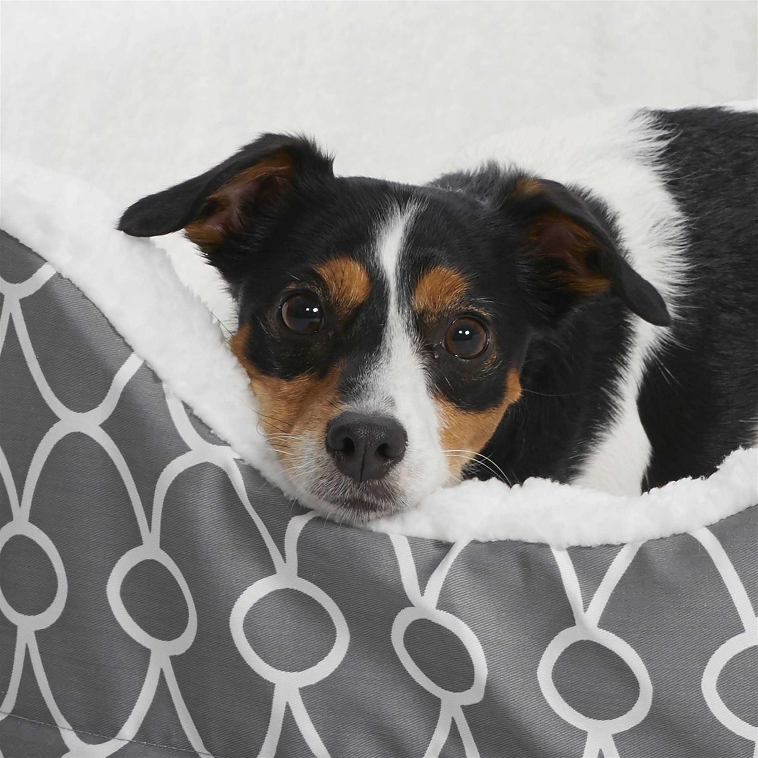 Soft fleece convoluted orthopedic pet bed w/ Teflon Fabric Protector. Soothes aching joints & muscles and fits “Small Breed” dogs Pet bed features durable attractive gray geometric pattern w/ removable zippered case and Teflon Fabric Protector which repels pet stains, odors, oils & fluids Orthopedic cat bed / dog bed, outer dimensions measure 28L x 22.55W x 8.25H Inches Features a cozy high bolster for pets who nestle / circle before laying down, a comfortable egg-crate cushioned base & Teflon Fabric Protector The Midwest Nesting bed combines comfort, style, and functionality to create a luxurious, supportive pet bed your dog or cat will love! With an orthopedic egg-crate base, super-soft fleece removable liner, and thick foam high-wall bolster, this pet bed provides a high level of support and comfort. In the event of an accident, simply remove the pet bed cover (w/ hidden zipper) and place the pet bed in your washing machine w/ cold water and tumble air dry the cover. Each orthopedic egg-crate Cradle Pet Bed also features a “no-slip” grip on the bottom making this dog bed / cat bed ideal for hardwood or tile floors.