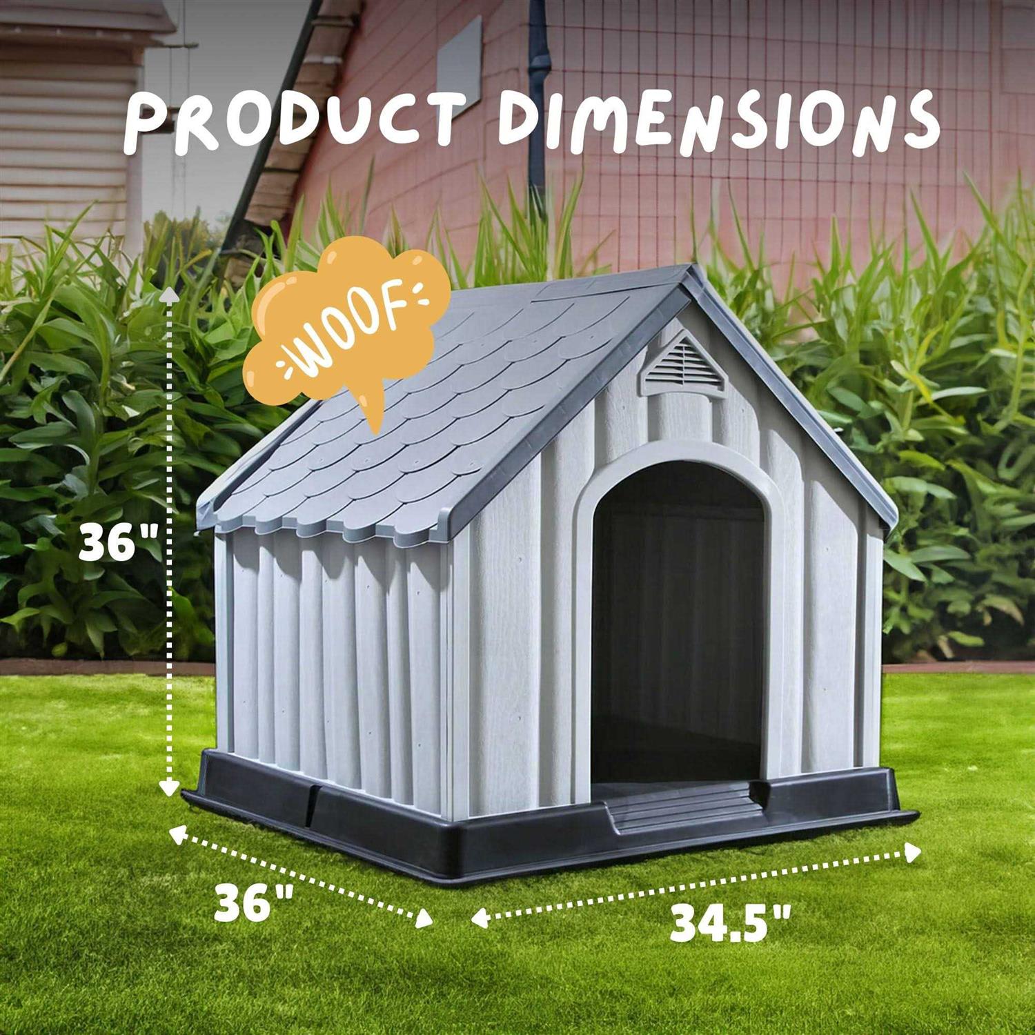 Your most loyal companion deserves a space to call their own. Treat your furry friend to the Outdoor Pet House Waterproof Shelter by Ram Quality Products. This extra large dog kennel offers a safe, warm, and dry space for your pets to lounge around and cool off. Thanks to the tool-free, easy assembly and included hardware, you can build this dog house within minutes. Constructed from high-quality plastic materials and a stable base, this tiny house is built to withstand whatever weather conditions mother nature throws your way. The waterproof dog shed features a slanted roof that diverts rainwater and has an elevated floor to prevent the outdoor shelter from flooding. Innovative thermal balancing properties protect your pup from cold winter days and keeps them cool in hot summer weather. Simple to clean, simply detach the roof for easy access into the interior of the dog house. Measuring 36 inches long, 34.5 inches wide, and 36 inches tall, the Ram Quality Products Outdoor Dog Kennel House is perfect for small, medium, large, and extra-large sized dogs and pets.