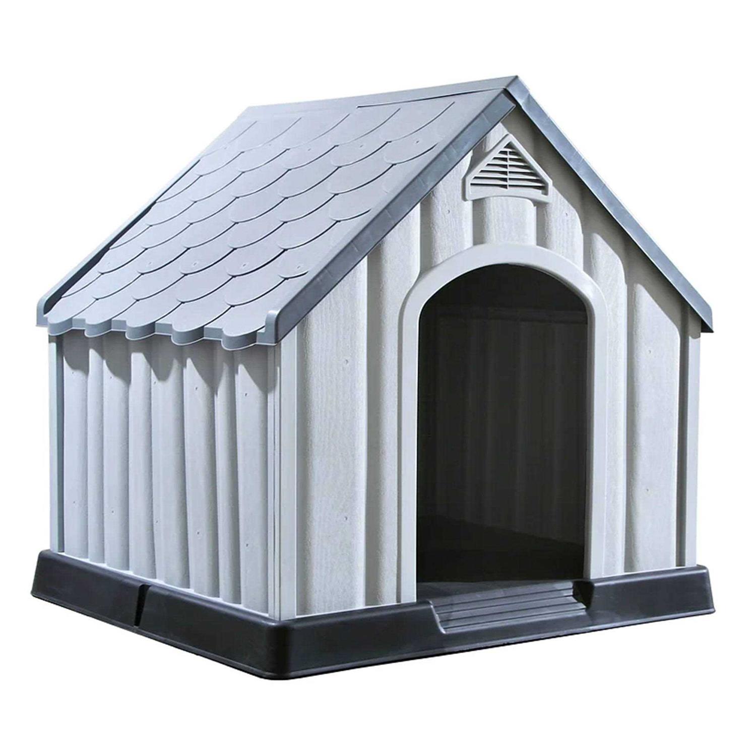 Ram Quality Products Outdoor Pet House Large Waterproof Dog Kennel Shelter, Gray