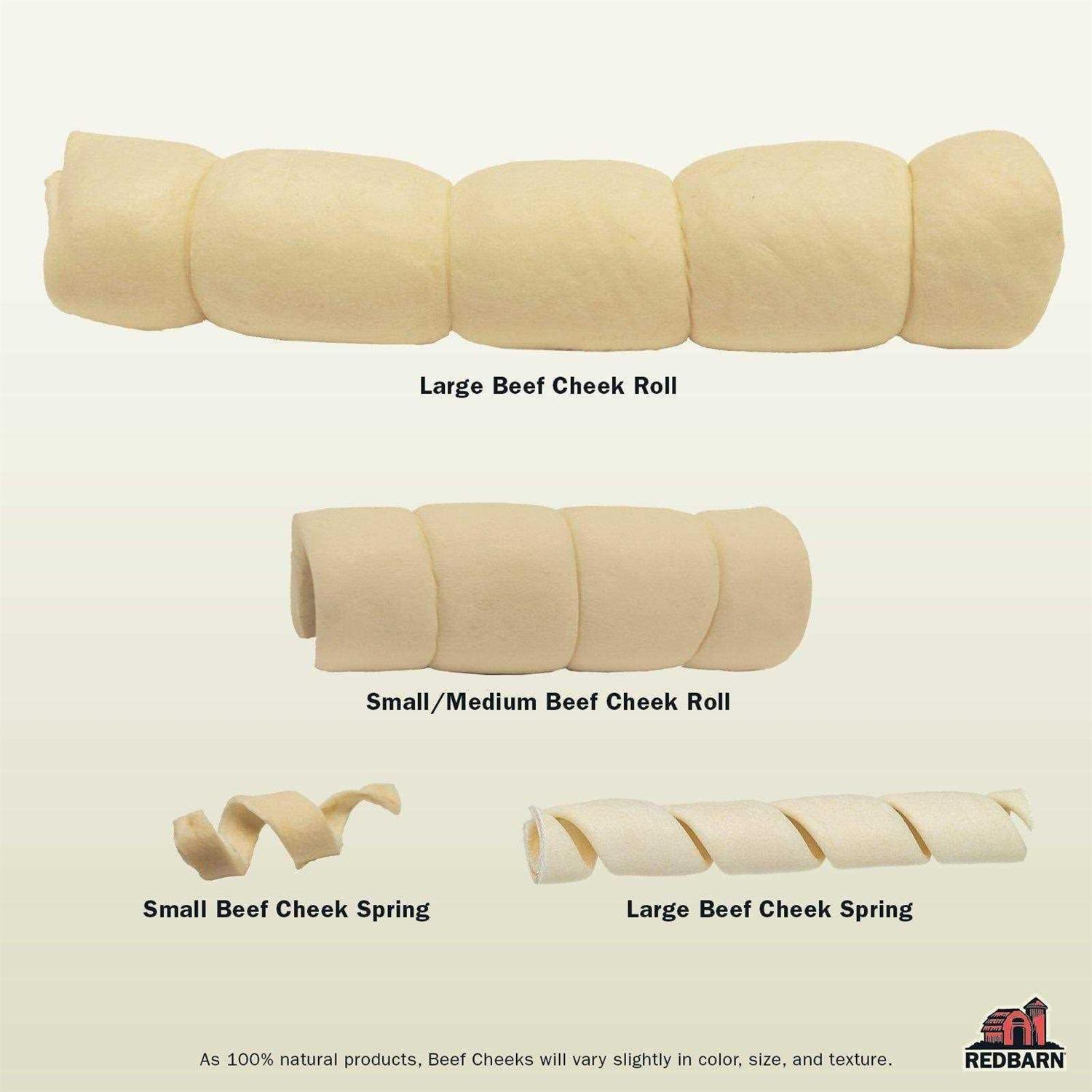Roll Your Pooch Into Action Redbarn’s new Beef Cheek Roll and Beef Cheek Spring are an all-natural chew made from the cow’s entire cheek. Beef Cheek Springs are a puffy, lightweight, and single-ingredient chew free of chemicals, additives, preservatives, flavors, and coloring. Plus, the springy shape helps fight boredom as your dog playfully figures out the best way to hold this chew and chomp down. Beef Cheek Rolls are available coated, with a delicious and nutritious chicken and carrot glaze, or uncoated. Even better, our line of Beef Cheek chews is naturally rich in collagen, which helps support your dog’s joint health. Beef Cheek rolls are 100% natural and made from soft thick, easily digestible cow cheeks. Beef Cheek rolls 100% natural Made from soft thick, easily digestible cow cheeks Ingredients Beef Cheek.