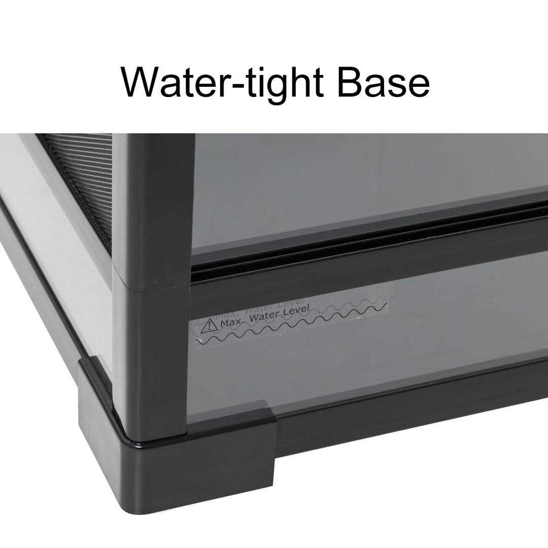 REPTIZOO Glass terrariums are manufactured to the highest standards and are the preferred choice of professionals. This new size of extra-tall Repti Zoo Glass Terrarium is ideal for arboreal reptiles and amphibian species! It’s high tall makes it a great habitat for a number of tree-dwelling species like tree boas & pythons, day geckos, leaf-tailed geckos, tokay geckos, tree frogs, etc. The front opening doors allow easy access for maintenance and feeding. A specially designed lock will prevent escape and the doors can be opened separately. The full-screen top ventilation allows UVB and infrared penetration and is completely removable for easy access while decorating or cleaning. In the back of the screen cover are 6 closable wire or tube inlets on both sides to install Heat Wave Rocks, Waterfalls, sensors, etc. inside the terrarium.