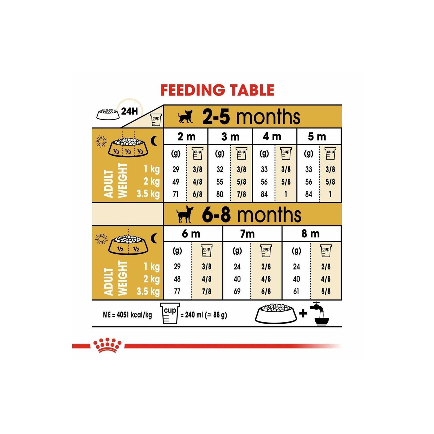Royal Canin knows what makes your Chihuahua puppy magnificent is in the details. While Chihuahuas might be one of the smallest breeds in the world, these protective little pooches have big nutritional needs. They can benefit from the right-sized puppy food to help support their immune system, maintain healthy digestion, and satisfy their picky appetites as they take on puppyhood. Royal Canin Chihuahua dry puppy food is tailor-made nutrition created just for your pure breed Chihuahua puppy. Whether you have a deer head, apple head, fawn, or teacup, this exclusive breed-specific diet is uniquely formulated for your Chihuahua puppy, with the specific nutrients to help them thrive. The customized small-sized kibble is specially designed for your Chihuahua’s pointed muzzle and tiny jaw, making it easy for them to pick up and chew. An exclusive mix of antioxidants and vitamin E supports their developing immune system and keeps their body growing strong. Highly digestible proteins and precise fiber content support healthy digestion to help promote optimal stool quality and reduce unpleasant stool odors. And the combination of kibble size, exceptional aromas, and flavors is sure to please even the pickiest little eaters. Once your small breed Chihuahua puppy is over 8 months old, transition them to Royal Canin Chihuahua Adult dog food for precise nutrition into the adult years.