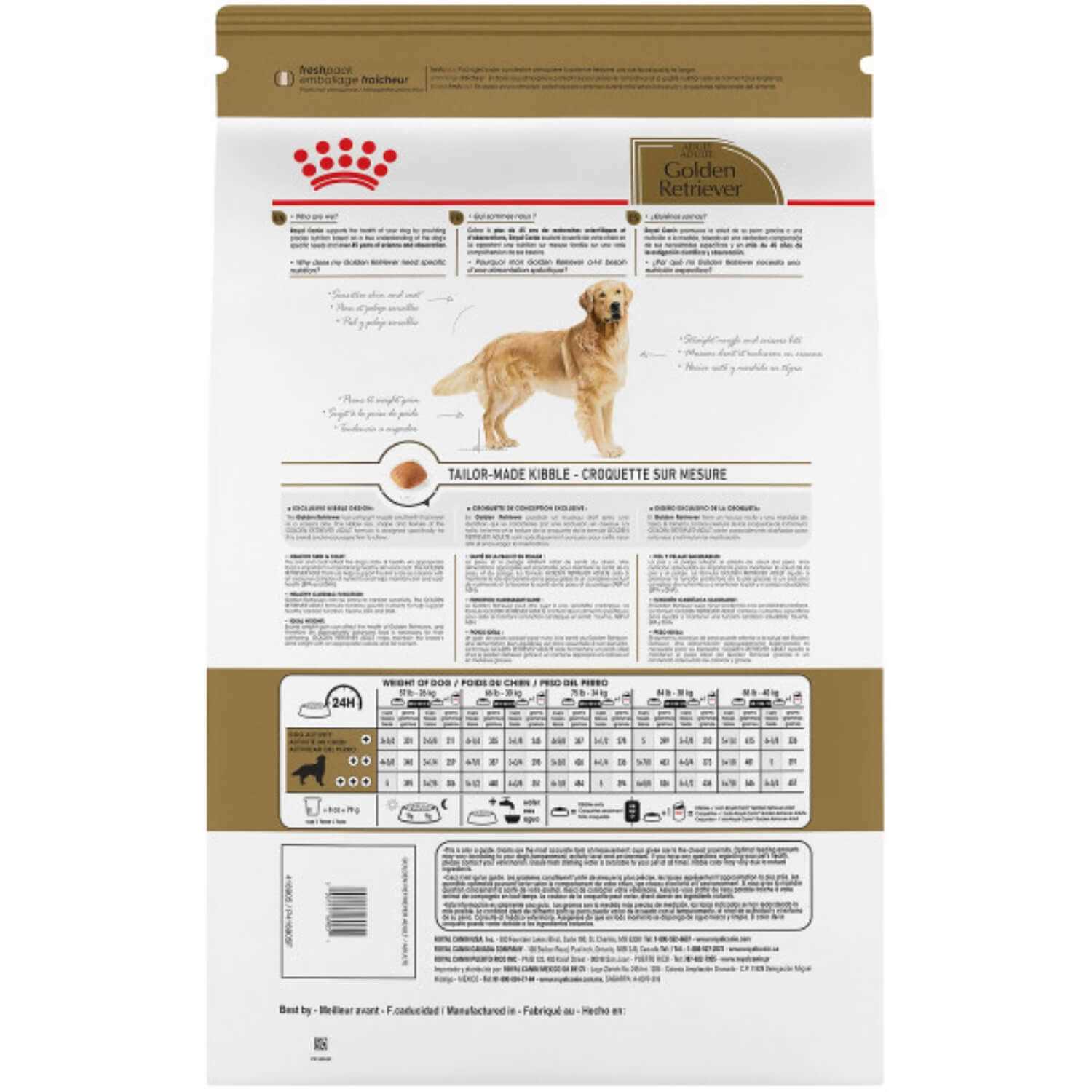 FORMULATED FOR PUREBRED GOLDEN RETRIEVERS: Royal Canin Golden Retriever Adult Dry Dog Food is designed to meet the nutritional needs of purebred Golden Retrievers 15 months and older – SPECIALIZED KIBBLE: Unique kibble is designed for a Golden Retriever’s straight muzzle and scissor bite to encourage chewing – SKIN AND COAT: Reinforces the skin barrier with essential nutrients to support healthy skin and coat – HEART HEALTH: Taurine, EPA, and DHA promote healthy cardiac function – WEIGHT MANAGEMENT: Precise calorie and fat content designed for big dogs supports weight management | Royal Canin Royal Canin Breed Health Nutrition Golden Retriever Adult Dry Dog Food | 30 lb