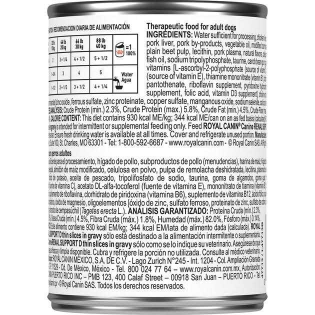 Royal Canin Veterinary Diet Adult Renal Support D Thin Slices in Gravy Canned Dog Food, 13.5-oz, Case of 24