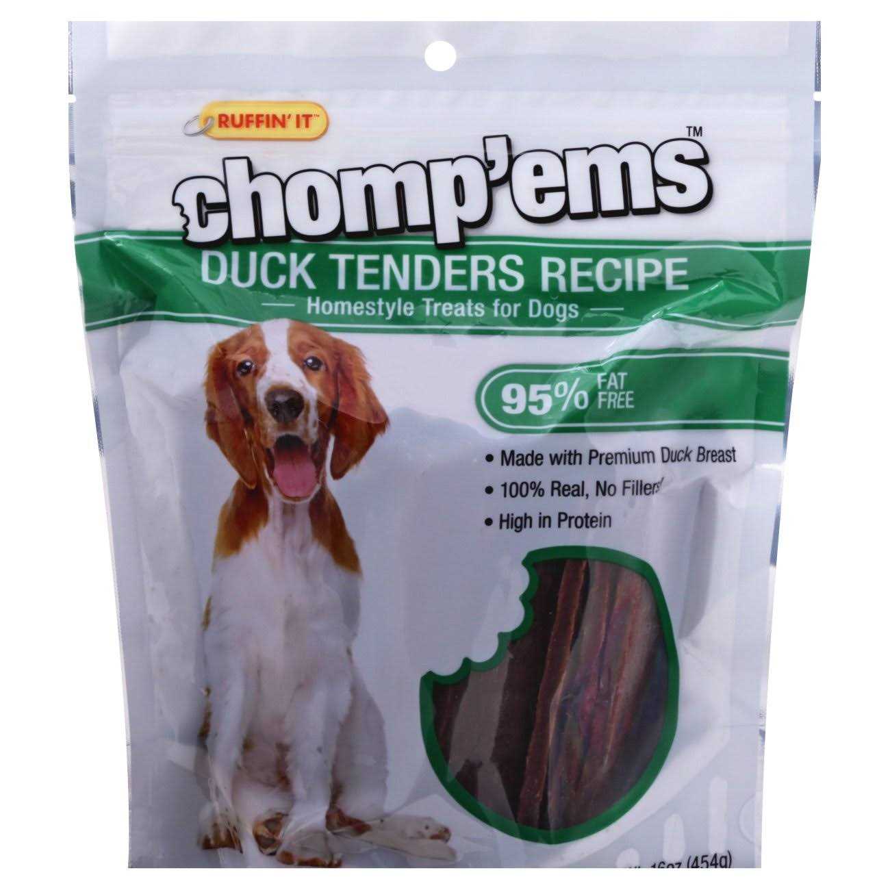 Ruffin It Chomp’ems Treats for Dogs, Homestyle, Duck Tenders Recipe – 16 oz
