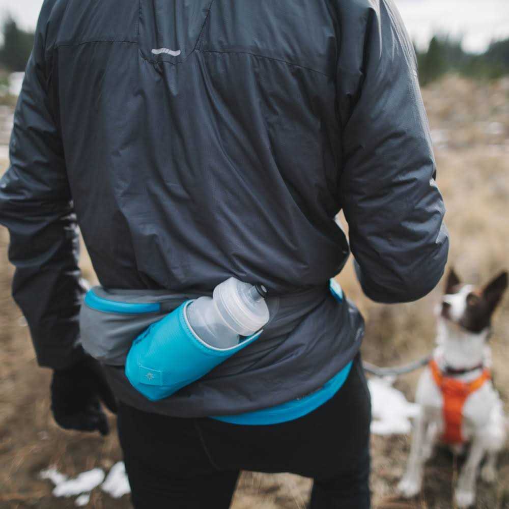 For many runners, a trail run just isn’t the same without their four-legged pal. The Ruff Wear Trail Runner System is designed to make that a safe and enjoyable experience. It includes a hydration hipbelt and an integrated leash to keep you and your dog connected. The padded Trail Runner Belt provides a comfortable fit and keeps “bounce” to a minimum. It has a broad, adjustable fit range of 25”-45”. It has a zippered water-resistant pocket and a stretch mesh pocket to help carry running essentials and keep everything in close reach. It also has a canted “holster” that safely stows a BPA-free water bottle for on-the-go hydration. The included leash utilizes Ruff Wear’s shock-absorbing Wavelength webbing to provide bungee-like performance, giving your dog 3.3′-5.9′ of “travel”. The leash’s swiveling Crux Clip offers a strong, secure connection point to your dog’s collar or harness (both sold separately) and offers easy one-hand adjustment.