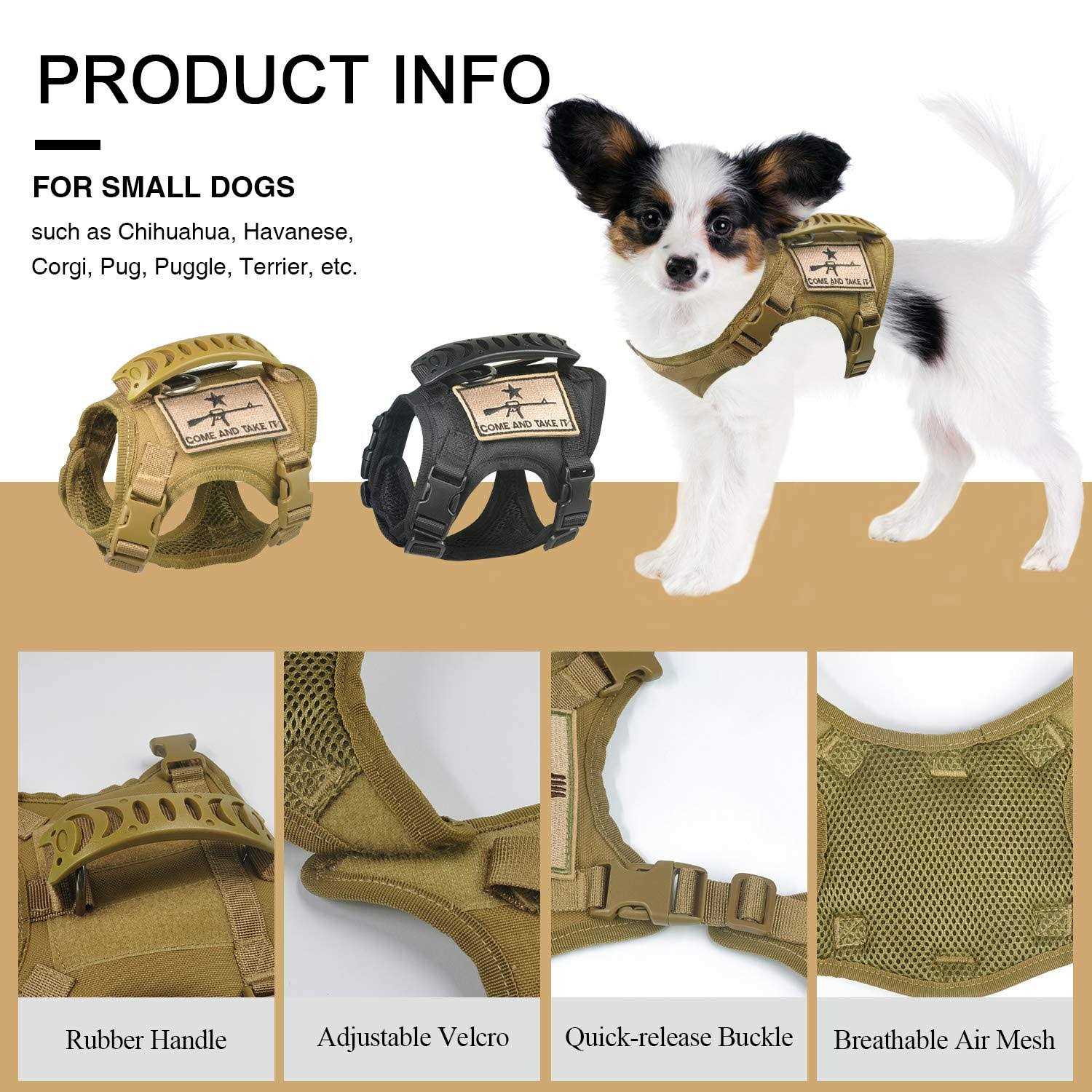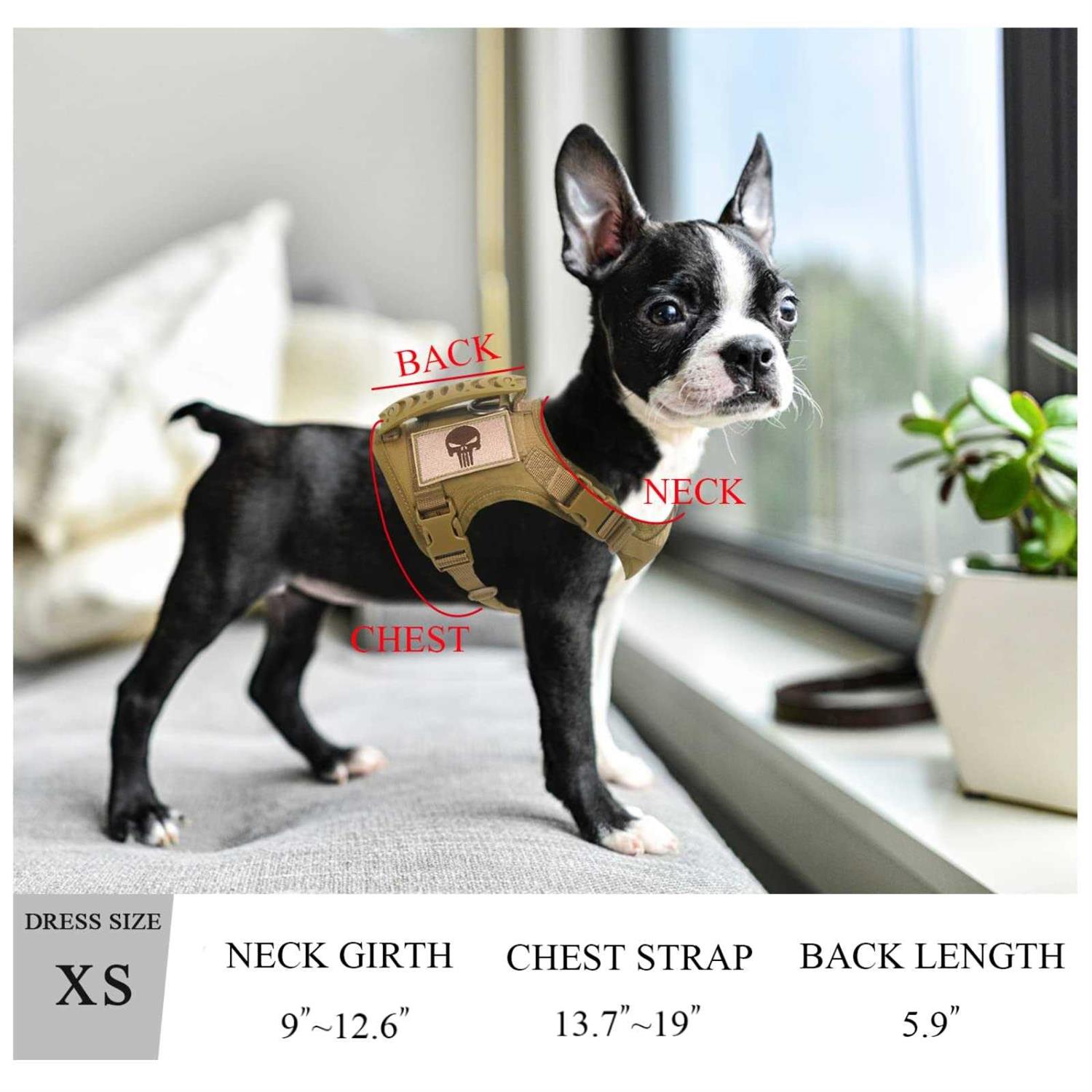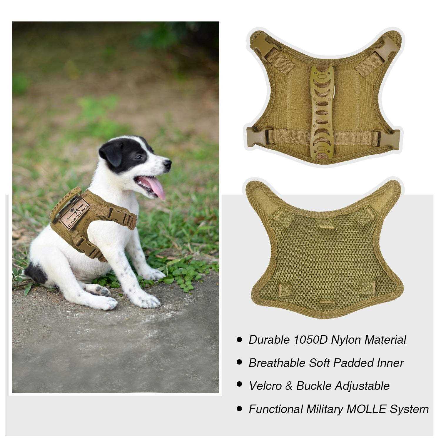SALFSETacticalDogTrainingXS (Neck:9″-12.6″)(Chest: 13.7″-19″), A-Khaki. 100% breathablepaddedinner, preventhurtdog/cat’sskinandhairtocomfortablefit. 2adjustableVelcro, 4quickreleasebucklesforeasyputon/off.