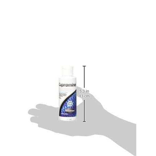 Keep your aquarium free from unwanted parasites and infections with Seachem Laboratories Cupramine Copper Treatment 3.4 fl oz. This powerful solution is specially formulated to effectively treat and control various external parasites, including ich and other harmful protozoans, on both marine and freshwater fish. Cupramine is designed to be gentle on fish and is less toxic to fish than traditional copper medications. It’s an ideal choice for treating and preventing fish diseases while maintaining a safe and comfortable environment for your aquatic pets. Key Benefits: Effectively treats external parasites, including ich and other protozoans, in marine and freshwater fish. Gentle on fish and less toxic compared to traditional copper medications, reducing stress on aquatic pets. Provides a reliable solution for controlling and preventing fish diseases that can harm your aquarium inhabitants. Designed to be safe and effective when used as directed, helping you maintain a healthy aquatic environment. Comes in an easy-to-use liquid form that allows for precise dosing and administration.