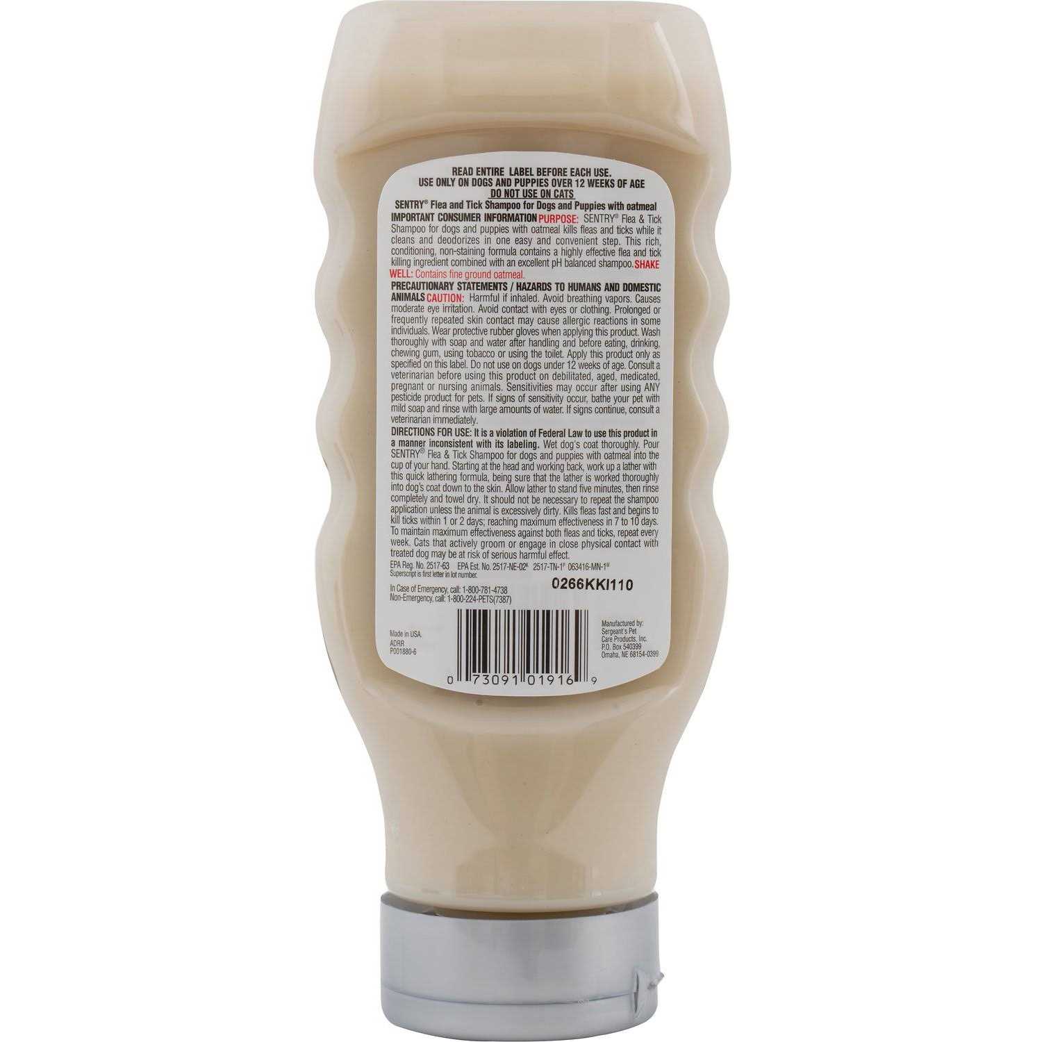 Sentry(R) Flea & Tick Shampoo with Oatmeal kills fleas and ticks while it cleans and deodorizes in one easy and convenient step. This rich conditioning, non-staining formula contains a highly effective flea and tick killing ingredient combined with an excellent pH balanced shampoo.