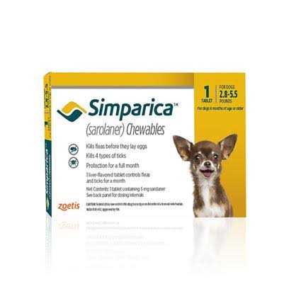 Simparica – 2.8-5.5 lbs – 3 Tablets