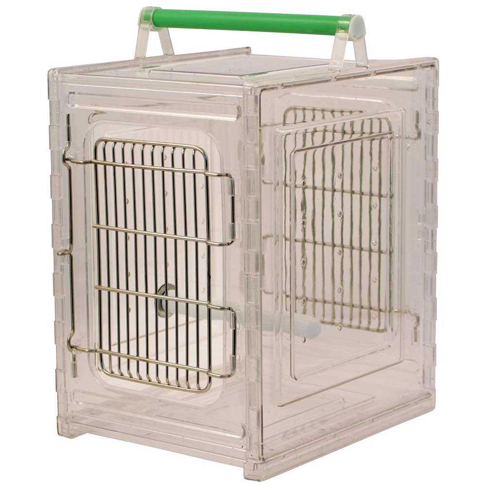 Caitec Perch & Go Polycarbonate Bird Carriers allow you to transport your pet bird in a stress free bird travel carrier. This carrier gives pet birds a clear view of their surroundings with the lightweight, transparent, high impact resistant polycarbonate construction. It also provides you a clear view so you can keep an eye on your pet. Stainless steel wire door and back panel allow for even air flow and complete cross ventilation. Perch & Go Bird Carriers are bird safe, economical, convenient, and almost impossible to break!