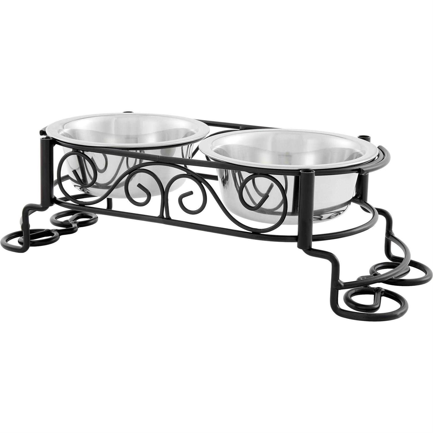 These pet bowls are elegant looking and will fit in well in your home. It features two stainless steel bowls and it features a raised height for eating. Size: 5.80″ W x 12.00″ H x 2.50″ D.
