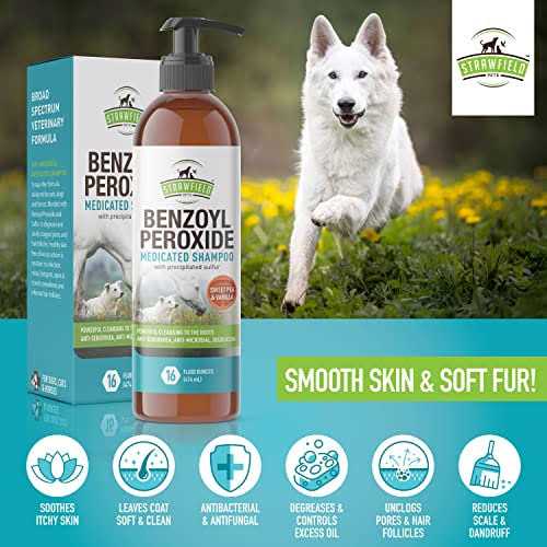 Strawfield Pets Benzoyl Peroxide Shampoo for Dogs, Cats, Sulfur – 16 oz – Medicated Dog Shampoo for Smelly Dogs, Anti Itch Dry Skin Allergy