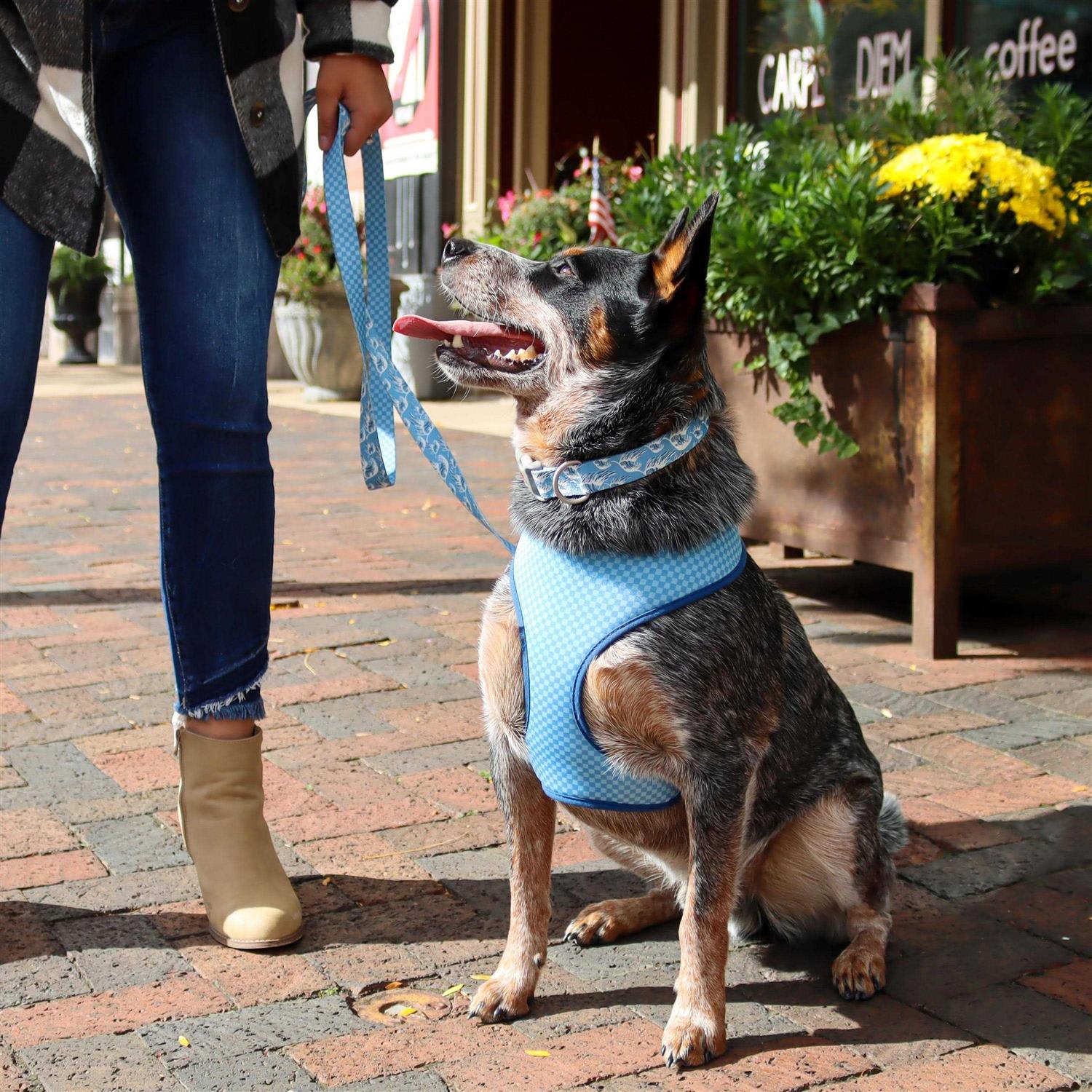 Sublime Adjustable Dog Collar, Blue Waves with Blue Checkers, Medium: 12-18-in Neck, 1-in Wide