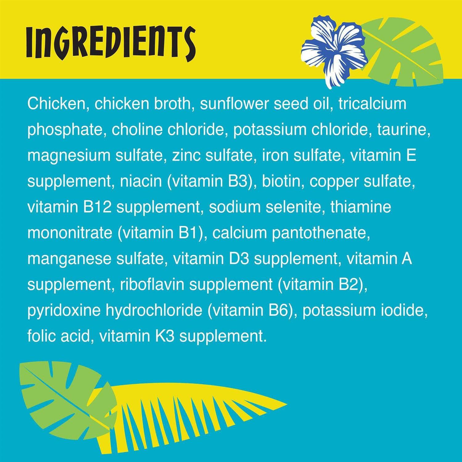 Tiki Cat Luau recipes turn every meal into a party. They contain real, recognizable ingredients that are high protein and grain free because cats are carnivores. Tiki Cat Puka Puka Luau features tender pieces of shredded chicken in a delightful chicken consommé. Chicken is the first ingredient and it’s hand-packed in a human-grade facility. Tiki Cat Luau is complete and balanced for all life stages and provides high moisture to give cats the supplemental water they need.