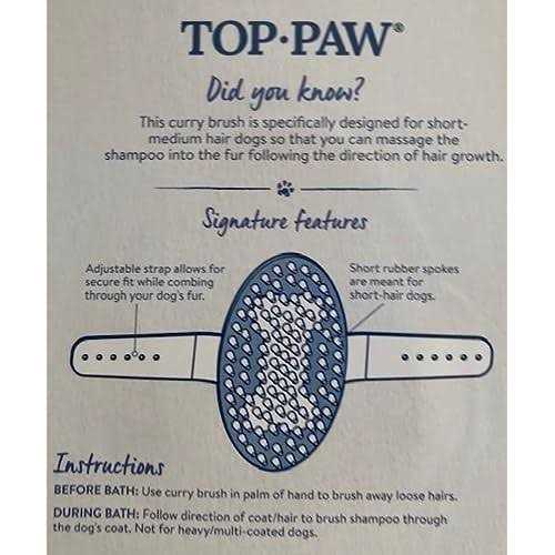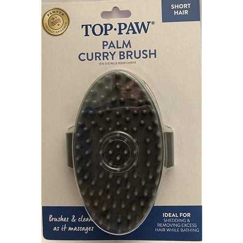 Brushes by Top Paw. Details:Palm Curry Brush. Ideal for shedding & Removing excess hair while bathing. Brushes & Cleans as it massages. One Gray brush with adjustable strap allows for a secure fit.