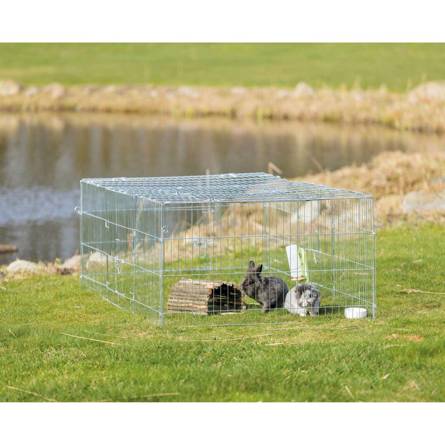 TRIXIE Enclosed Outdoor Small Animal Run; Help protect your precious pets with the TRIXIE Enclosed Outdoor Small Animal Run! This enclosed animal run helps corral your smaller animals while giving them a place to exercise, play or lounge in the sun. It’s made of durable-yet-lightweight, galvanized metal that can stand up to the elements. It also includes multiple entry points—helping make feeding, cleaning and gathering easy while you care for your pint-sized sidekicks. Made from durable galvanized metal to help ensure years of use. Enclosed to help protect and corral your small pets. Includes multiple entry points to help make feeding, cleaning and gathering easy. Lightweight construction makes it easy to relocate. Can be fully assembled quickly without the use of tools.
