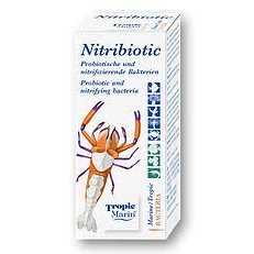 Probiotic and nitrifying bacteria for saltwater and freshwater aquariumsTropic Marin NITRIBIOTIC is a combination of probiotic and nitrifying bacteria in one preparation which strengthens the defences of the immune system of fish and shrimps and improves the water quality. The nitrifying bacteria efficiently start the nitrification process, i.e. the process of breaking toxic ammonia down into non-toxic nitrate. The purple bacteria contained in NITRIBIOTIC oxidises toxic hydrogen sulphide to non-toxic sulphur and sulphate. Probiotic bacteria and yeasts have a proven positive effect on the health and well-being of fish and shrimps, especially when breeding. Benefits Bacterial compound with probiotic, nitrifying and purple bacteria. The addition of probiotic bacteria has a healthy effect and improves the stress resistance in the animals. Nitrifying bacteria assist the nitrification. Purple bacteria break down hydrogen sulphide. Suitable for any aquarium stock – fish, corals, LPS, SPS, other filter feeders and/or crustaceans in salt water aquariums as well as ornamental fish, shrimps and plants in freshwater. Easy-to-dose liquid solution. Long shelf life even after opening. Ingredients Tropic Marin NITRIBIOTIC contains Bacillus subtilis, Nitrobacteria, Saccharomyces, Lactobacillus and Purple bacteria. Application and dosage Shake the bottle well before each use! To enable the bacteria to develop unimpeded in the aquarium, turn off UV systems, ozonisers and skimmers before dosing and only turn on again 3-4 hours after dosing. NITRIBIOTIC can be dosed into the inlet of a biological filter or directly into the aquarium water.