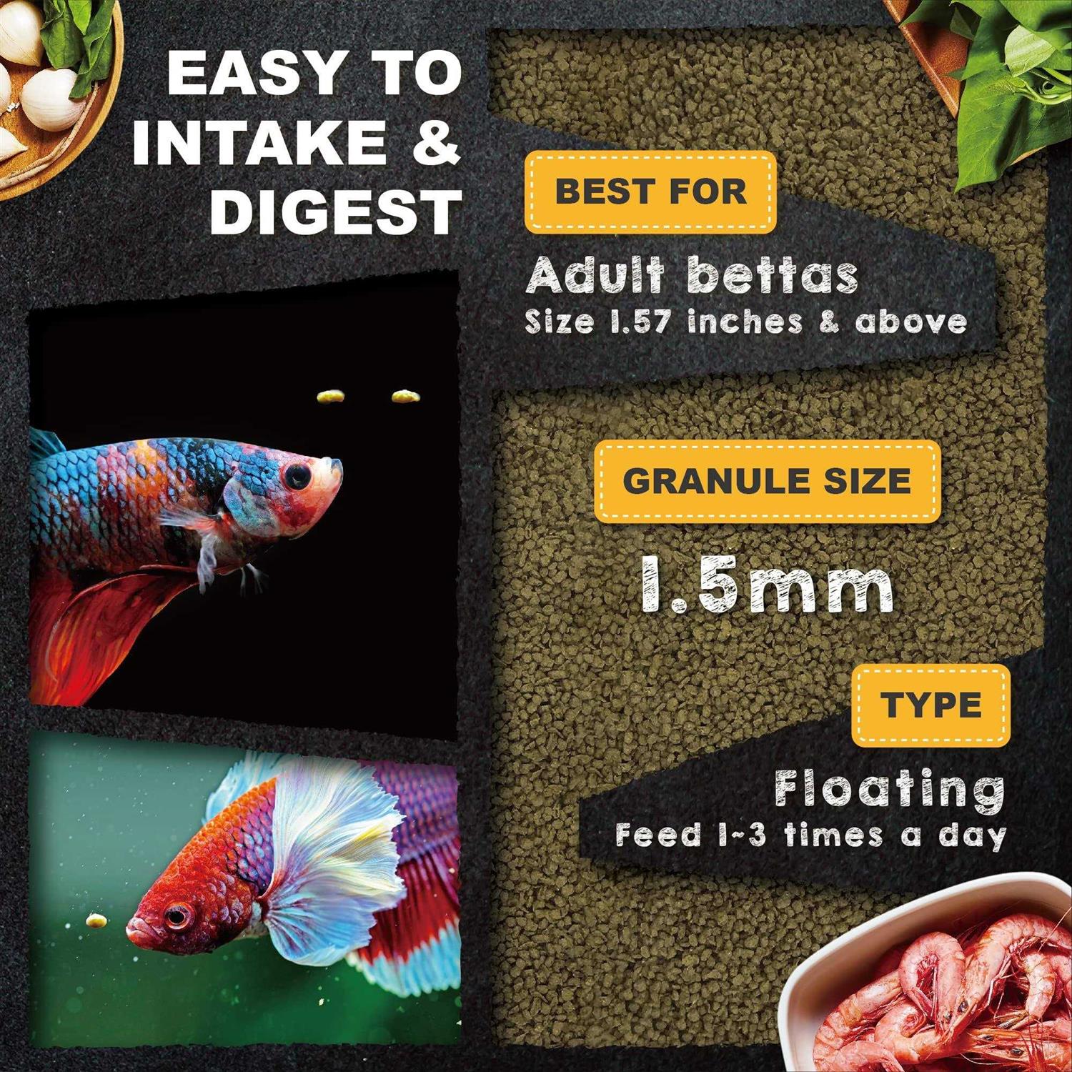 Ultra Fresh Betta Fish Food, Pro Shrimp Patties, 50% Sword Prawns + Akiami Paste Shrimps, All Natural Protein, Rich in Calcium, for Betta’s Healthy
