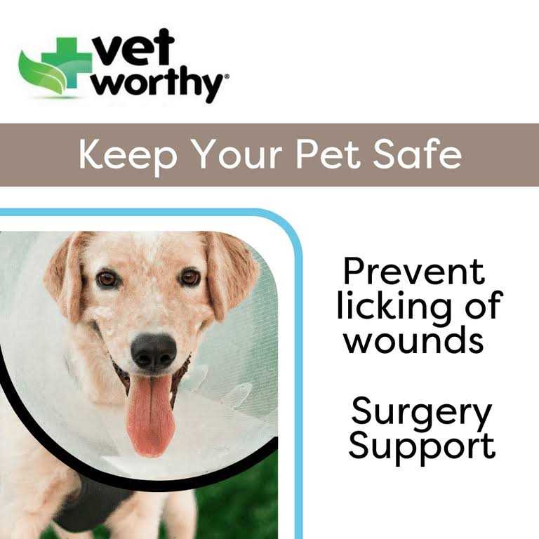 Vet Worthy Protective Collar – Large (24 – 39cm neck circumference) will keep your dog from aggravating a healing wound. This is a safe way to take care of your dog and keep them from licking or biting an area that needs proper time to heal. The transparent material lets your dog maintain peripheral vision and the adjustable snaps ensure a secure fit. The Protective collar has a double-lock snap on one side of the protective collar. Secure the collar snuggly around your dogs neck, but not tight enough to choke them. Line up the snaps to the corresponding holes on the opposite side of the protective collar and press together. Careful monitor your dog for the first several hours of use to ensure they have become used to wearing the protective collar without showing signs of being distraught or agitated.