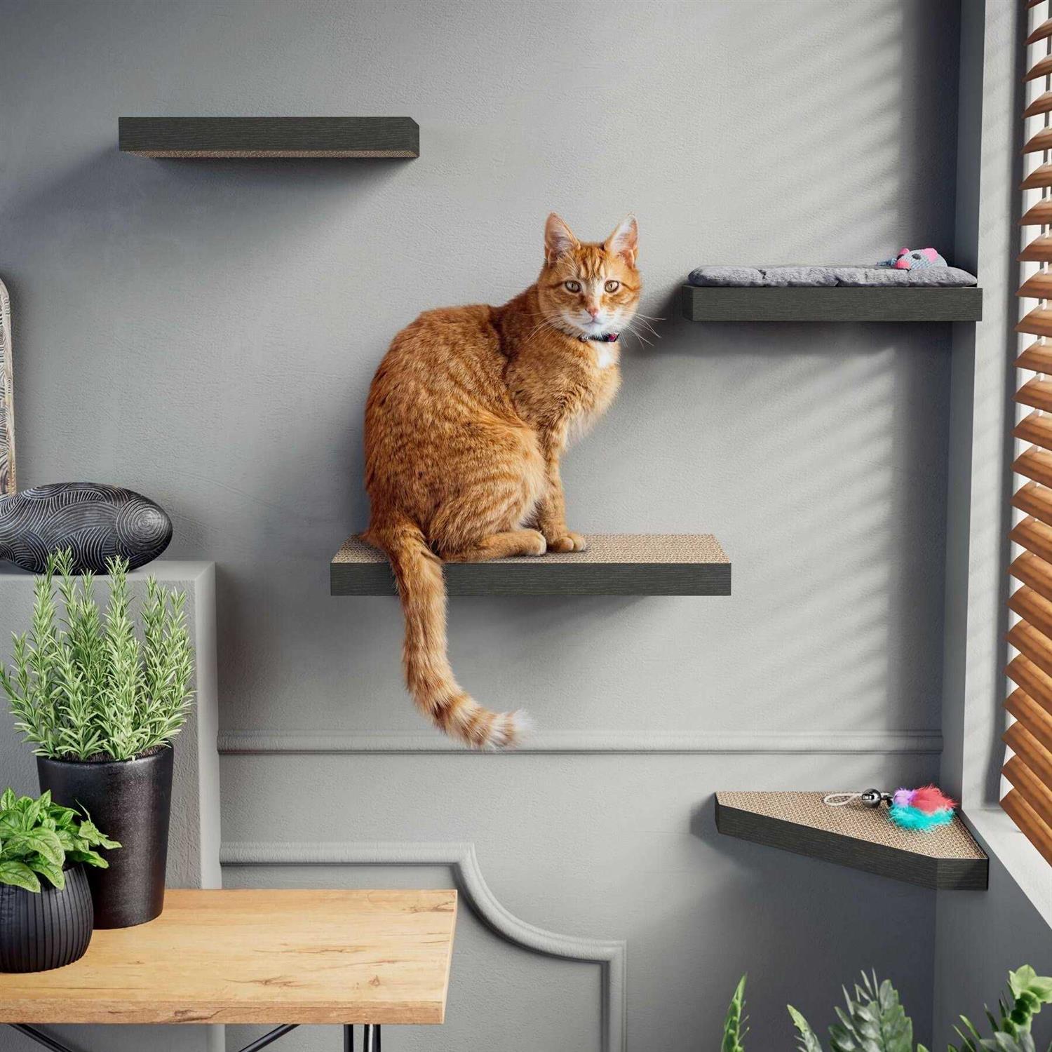 Way Basics Cat Scratcher Floating Shelf Combo 4 Pack, Charcoal Black