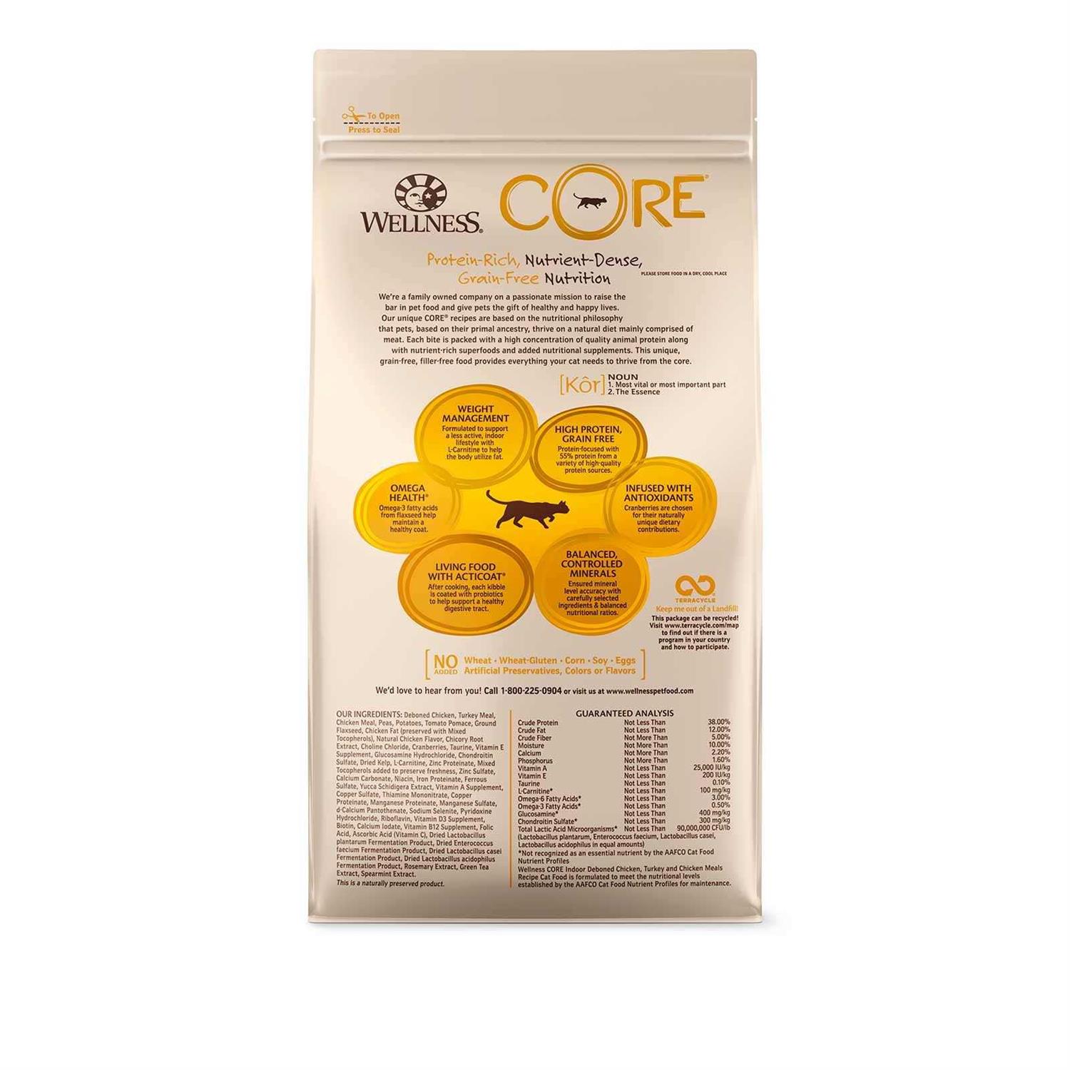 Wellness Core Grain-Free Dry Cat Food, Indoor, Chicken & Turkey, 5-lb