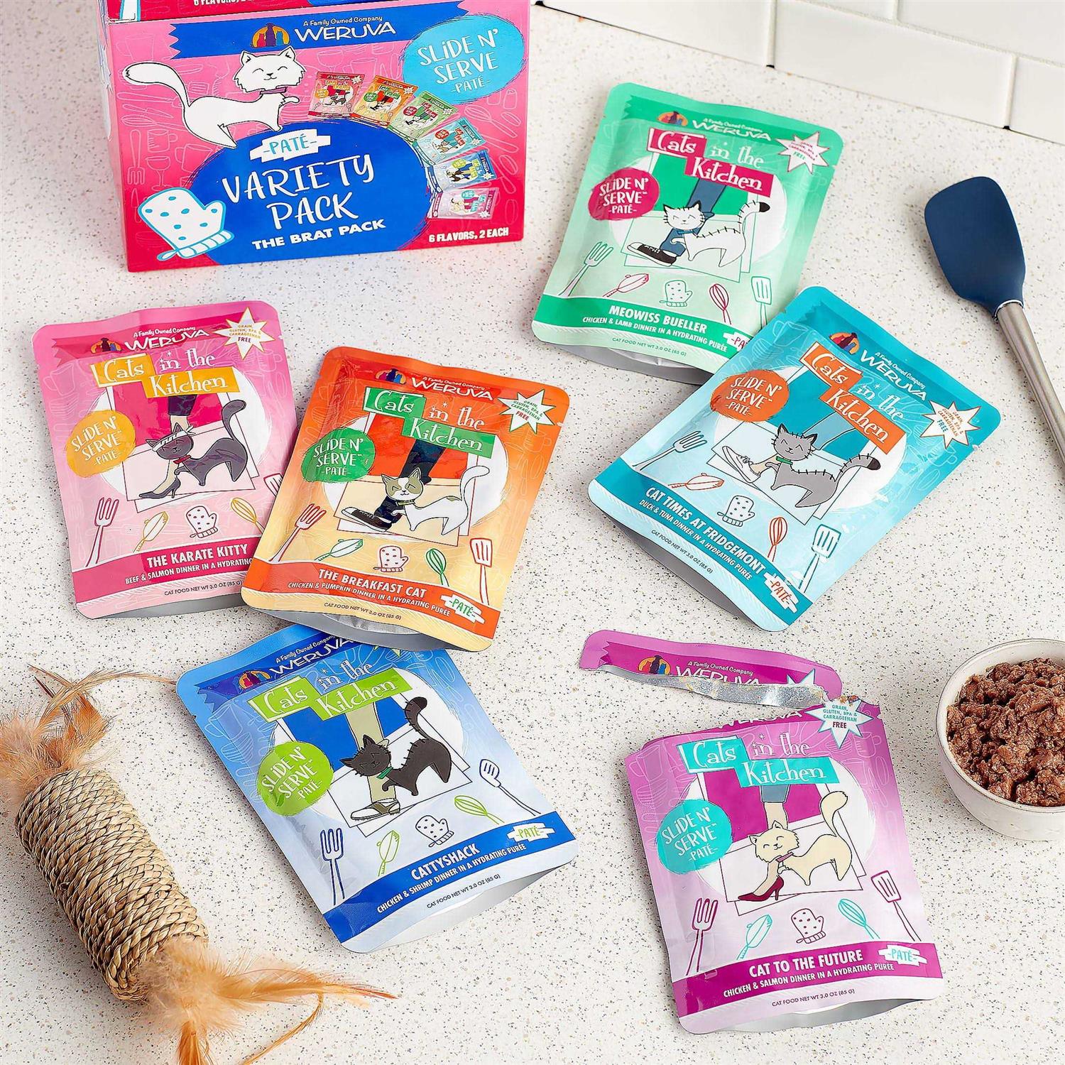 Weruva Cats in The Kitchen Slide N’ Serve The Brat Pack Variety Cat Food Pouches 3 Ounce (Pack of 12)