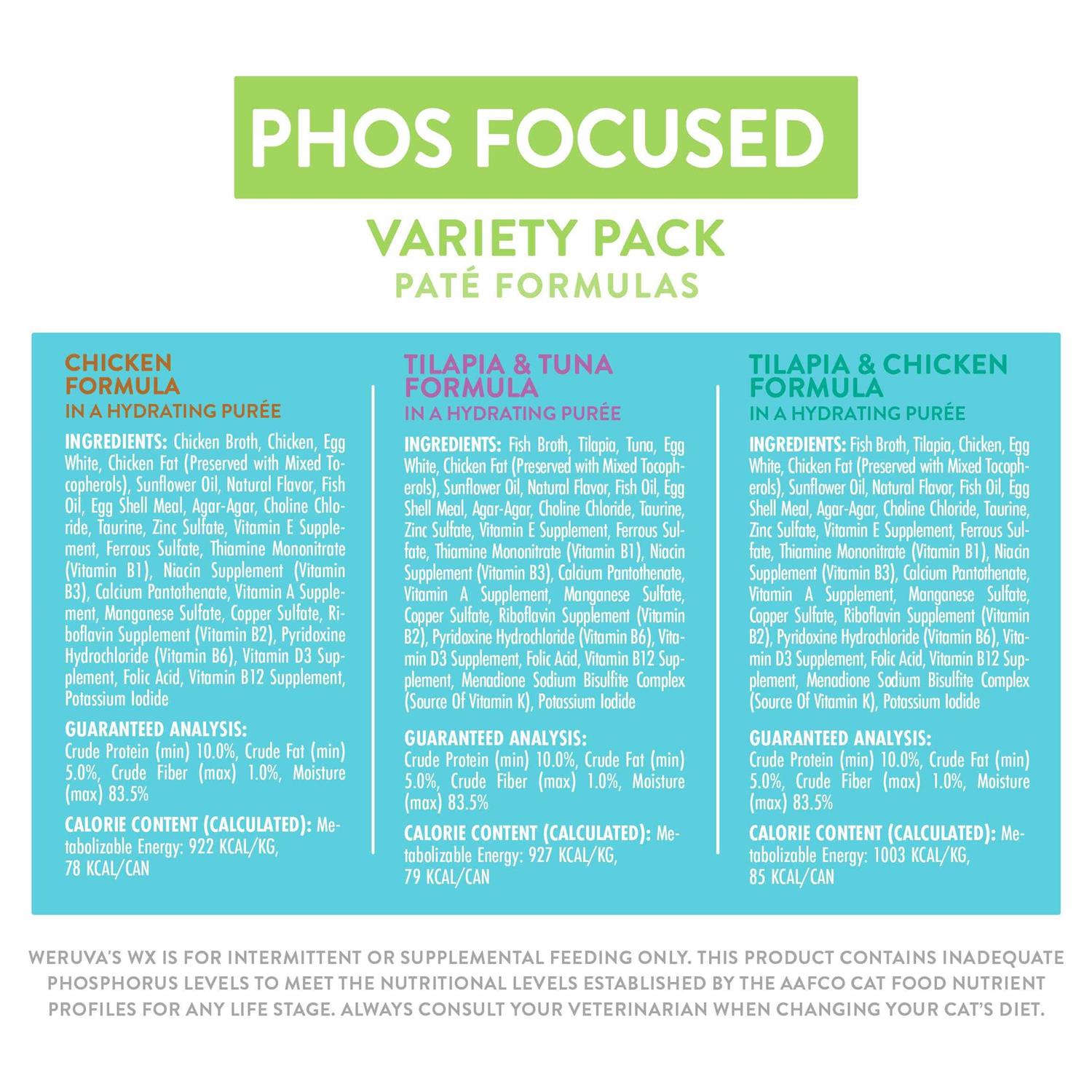 WX Phos Focused Foods Pate Formulas Variety Pack Wet Cat Food, 3 oz., Count of 12