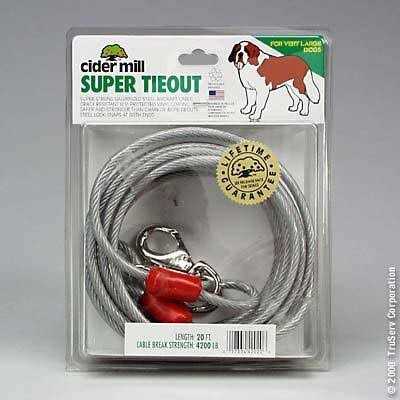 Tough, durable, and strong. Vinyl coated aircraft steel cable. For dogs under 150lbs. Break strength 4200 lbs. Tangle resistant. Extra strong swivel snaps. PLEASE NOTE: Not all pets can be tethered effectively. This item is not recommended for aggressive or overly active pets.
