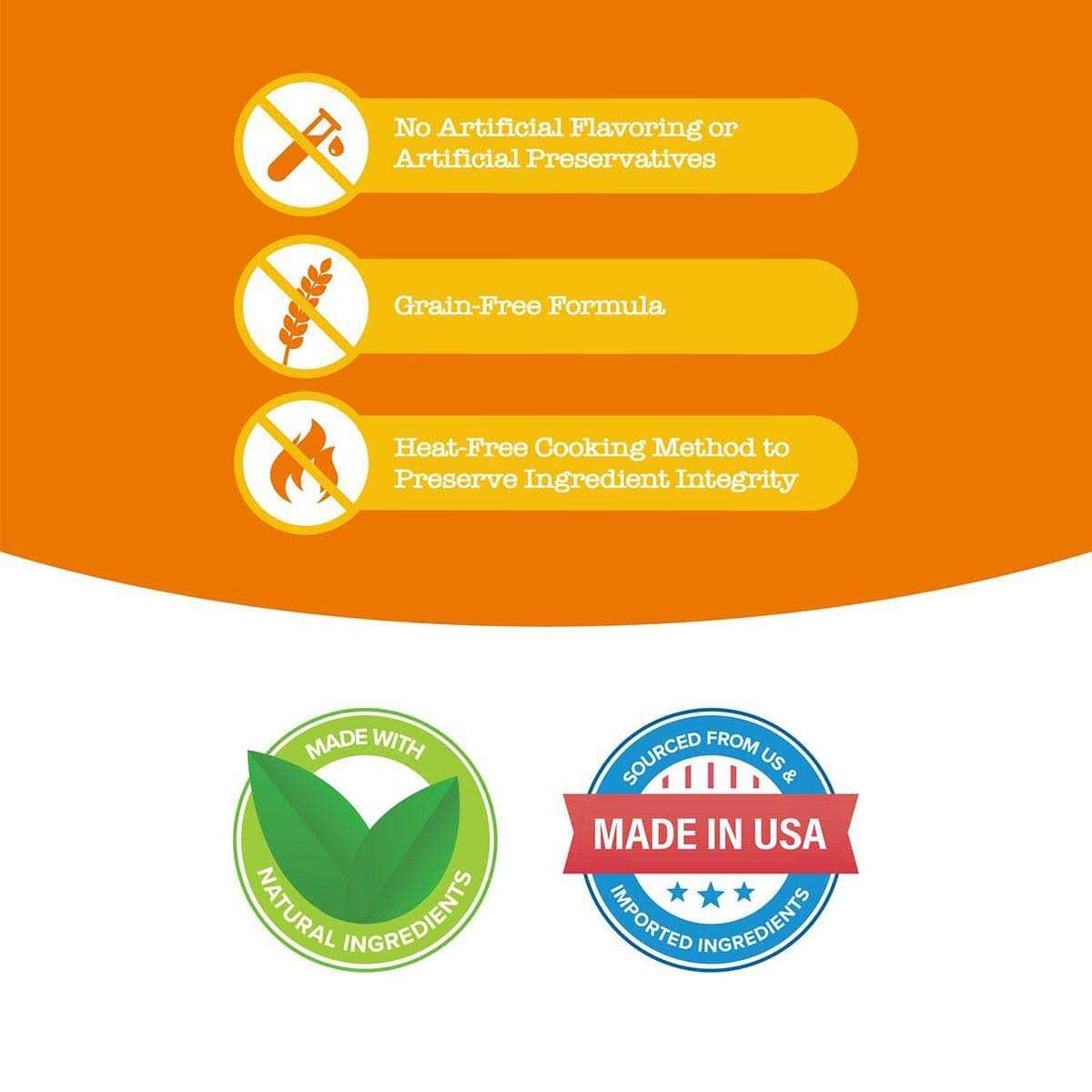 - Free of corn, wheat, artificial flavoring, or preservatives
